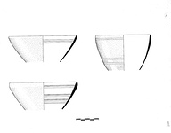 | Description: | Rim fragment. Grooved inside. Iridescent brown glaze. Molded glass. | |