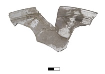 | Description: | Several joining fragments give part of rim and floor of a large plate or platter. Projecting rim thickened at inner and outer edges. Pale green, almost colorless glass. | |