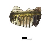 | Description: | Body ribbed; rim plain. Yellowish green in color; much oxidized. | |