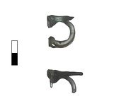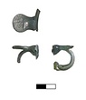 | Description: | Two loose handles with scraps of rim attached. Lower part of handle (a) missing. Apparently from one vessel, missing rest of body. Upright wall with plain fine-polished rim. Trailed handles forming vertical rings with lower ends looped back up exteriors. Tops pinched out to form flat-topped plates ending in pinched discs bearing two or more lines of illegible faint lettering on tops. Light blue-green glass. A known Early Imperial type | |