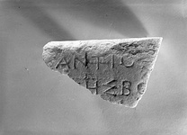 | Description: | Inscribed fragment. Part of the worked top preserved; otherwise broken. Inscribed in two lines. Set up by the prytanies of Antiochos crowned by the double and the demos. Pentelic marble. | |