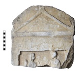 | Description: | Grave stele with relief. Broken away below and chipped about edges. On the top, the outline of a pediment in top relief. Below, the upper parts of the figures of a man and a a woman, facing. The back rough. Inscribed above the relief. Pentelic marble. | |
