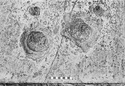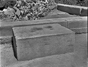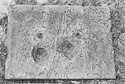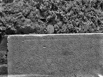 About the three exposed sides a band was left undressed around the bottom, and this projects ca. 0.025m. beyond the finished face above. This upper face would seem originally to have been smooth-dressed all over, and then to have been stippled by a fine point driven with short vertical strokes. Along every edge, however, a band (0.025-0.03m.) was left smooth dressed.