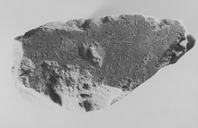 | Description: | Inscribed fragment. Broken away on all sides. Six lines of the inscription preserved. Hymettian marble. ADDENDA Belongs with I 1125. | |