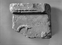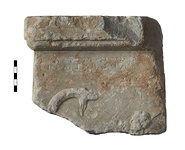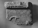 | Description: | Top of inscribed stele. Original top, left, and right, and back surfaces preserved; broken at bottom. A head, faced by a large bearded serpent, in relief is preserved below the two lines of the inscription. Dedication to Zeus Milichios. Hymettian marble. | |