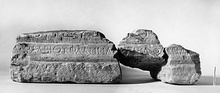 | Description: | Inscribed fragments. Fragment Π 192 a), inscribed face and rough picked bottom preserved. At the bottom a base-moulding on the kyma of which the second line is inscribed. Fragment Τ 73 b), not joining. The bottom preserved; the face is part of a moulded base, on which is the inscription. Four letters preserved. Hymettian marble. ADDENDA Joins with I 6376. Belongs with I 614, I 616, I 2531, I 3236, I 4036. Cf. IG II2, no. 3114. There is a tenous join (textually sound) between the right side at fragment I 2615a and the fragment of I 6376, to the other side of which I 2615b is joined. | |