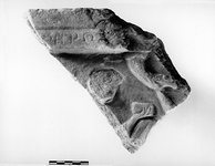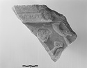 | Description: | Inscribed fragment of stele, with funerary relief. Original top, back, inscribed moulding and relief surface preserved; broken elsewhere. Part of relief with banquet scene; one figure facing left (face missing) holds cup in left hand. The right arm of another holding drinking horn with ram's head is preserved to right. Three letters preserved on moulding above. Pentelic marble | |
