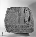| Description: | Fragment of inscribed Herm. Both sides preserved; broken at bottom, and at neck. The figure was male, nude, with a bit of drapery over the left shoulder. Surfaces somewhat worn. Inscription at top of shaft just below bust. One line preserved, and part of a second. Pentelic marble. | |