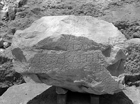 Inscribed face, right face, top, and rough picked back preserved. Broken at bottom.
