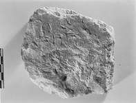 | Description: | Inscribed fragment. Inscribed on two faces. An edge at left of face A preserved; otherwise broken; picked fairly fine, six letters, in one line; tops also of line below. Face B, very rough, two lines of the inscription preserved. Hymettian marble. | |
