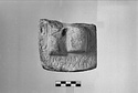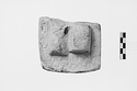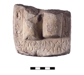 | Description: | Inscribed fragment of small grave stele. Broken off at the top; decorated down center with two cylinders. Inscription around the decoration, two letters preserved on each side; two lines at the bottom. Pentelic marble. | |
