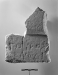 | Description: | Inscribed fragment. Two joining fragments from upper part of grave stele. Left edge preserved (?). Surface weathered. Letters faint. Two lines of the inscription preserved. Pentelic marble. | |