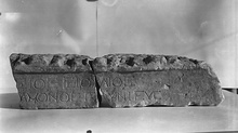 | Description: | Inscribed fragment. Smooth dressed beneath; ends and back broken. The top, much chipped, rough picked (?). At the front something has been broken away; three raised broken surfaces alternate with small smooth dressed areas, the latter 0.04-0.045X0.03m.; the width of the central broken surface, 0.14m. Pentelic marble. ADDENDA Joins with I 702. | |