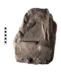 | Description: | Inscribed fragment of grave stele. Inscribed face, left side and top preserved, as well as roughly dressed back. Inscribed face surmounted by moulding and very high pedimental (?) top. In center of top is the lower part of a siren. Two lines of the inscription preserved. Pentelic marble. | |