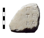 | Description: | Small inscribed fragment from bottom of block. Bottom surface picked fine; other edges broken. Record of sacrifices. Six letters preserved; stoichedon. Pentelic marble. ADDENDA Belongs to earlier side of opisthographus "wall", which has low code of 411-404 B.C. and sacred calendar on earlier side; later sacred calendar on later side (403-399 B.C.). With I 251, I 591, I 687, I 945, I 1026, I 4310. | |