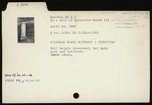 | Context: | Found in a wall of the Byzantine House III west of the Great Drain, in the industrial area. | |