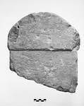 | Description: | Inscribed fragment of grave stele. The upper part of a grave stele with rounded top. On the stele proper, the head and shoulders of a draped man, left. Above him the inscription. Part of one line of the inscription preserved. Hymettian marble. | |