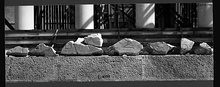 | Description: | Inscribed fragments of dedicatory inscription of the Stoa of Attalos. Fragment ΣΑ 317, (a), inscribed face only preserved. Many additional fragments with parts of letters are preserved. Fragment ΣΑ 794, (b), joining fragment from the dedicatory inscription of the Stoa of Attalos, preserving the lower part of the "E" from the word "βασιλευς". Fragment ΣΑ 875, (c), inscribed face and bottom surface preserved. Part of a "rho". Fragment ΣΑ 876, (d), inscribed face only preserved. Part of a straight stroke of one letter remains. Fragment Τ 3112, (e), part of one letter, "lamda" or "delta" preserved. Fragment Υ 454, (f), broken all around; part of underside remains. An "alpha" preserved. Fragment Υ 458, (g), an "alpha" preserved. Pentelic marble. | |