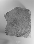 Broken above, below and at left. Right edge preserved, dressed with toothed chisel; two later cuttings. Back rough picked.