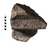 Description:   Inscribed fragment of monument of naiskos type.