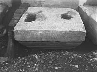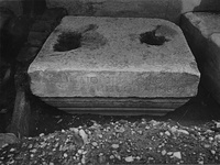 | Context: | Found in Roman road level, beside the south pilaster, southeast of the Stoa of Attalos. Found lying in the angle of the south pilaster and the marble steps to the west, on the road strosis, directly below the statue fragments S 309 (I 144), but separated from them by a rubble wall built directly over it. A tile drain has been built against the north side level with the top. | |