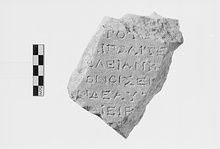 | Description: | Inscribed fragment. Inscribed face only preserved. Back roughly picked. Hymettian marble. | |