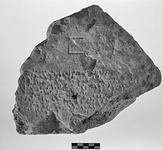 | Description: | Inscribed fragment. Broken above and below and at one side. The letters are on a smooth band at the center of each of the broad faces. On either side of the central band is a stippled band, then a smooth band at the edge. The narrow face is stippled at the center and smooth at the edges. Kerameikos boundary stone. Opisthographic. Hymettian marble. | |