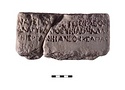 | Context: | Found in upper fill of cistern south of the Southwest Fountain House, trench IV. Plugging tile water drain in late addition to Roman Wall. | |