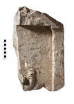 Top battered, pediment and acroteria gone. Only fragment of inscribed "architrave" with "eta" and upper horizontal stroke preserved.
