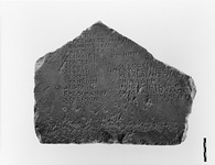 Lower left hand corner of a large stele. Surface and lettering generally very fresh. Band at bottom is roughened.