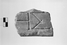 | Description: | Inscribed fragment. Lower surface dressed; other edges broken. Two letters preserved. Hymettian marble. | |