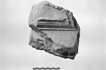 | Description: | Inscribed fragment. Broken at left and below. Fragment of a large stele with pedimental top, preserving the upper right hand corner. Inscribed face set off from the pediment by a moulding consisting of a flattened ovolo surmounted by a cavetto. Side and top finished with a claw chisel, back rough picked with a point. Parts of six lines of the inscription preserved; non-stoichedon. Hymettian marble. | |