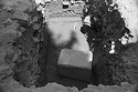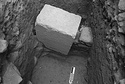 Description:   Inscribed rectangular statue base. Smooth face with chipped edges.