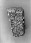 | Description: | Inscribed fragment. Part of smooth picked right side preserved; otherwise broken, but apparently preserved to near the top, where there are traces of the start of a moulding, at the top of the right side. Part of nine lines of the inscription preserved. Pentelic marble. | |
