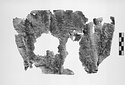 | Description: | Flat with holes. Readable as far as clean. Broken, but joins at the bottom. Unrolled | |