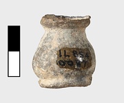 | Description: | Flat-bottomed round-bodied jug with flaring lip. | |