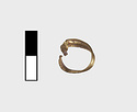 | Description: | Broken and melted on one side. Profile like J 142, except that top and bottom are more rounded. On angle of "V", row of fine neat dots. Early Geometric. 1.3gr | |