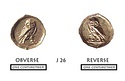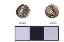 Description:   Piece of gold foil which has been pressed over the figure of an owl on a coin (?).