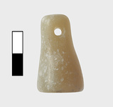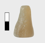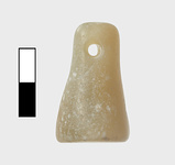 | Description: | Complete; surface abraded. Truncated conical shape, flat bottom, rounded top. Single horizontal piercing at top. Opaque greenish white stone. Mycenaean LHIIIA. | |