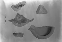 | Description: | Part of shallow lamp with unbridged nozzle. One half of the lamp, with a piece of the nozzle, is preserved. Broad, shallow body, with rather high base, rising slightly beneath. Pinkish-buff clay. Type 8 (Individ. lamps, Open Nozzles) of Agora collection. | |