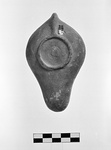 Opposed volute ornament stamped on rim. Bust, in relief on discus, profile to left.