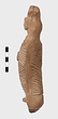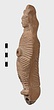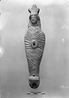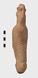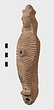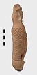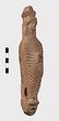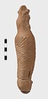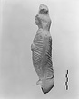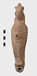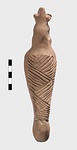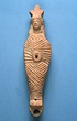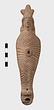 | Description: | Figure of a woman, swaddled tightly, like a mummy, with her arms straight down her sides inside the swaddling bands. The feet, each with six toes, stick out below; and the nozzle below the feet. Air hole for wick between feet. Filling hole at navel. On her head, a three-crested headdress with a rosette below at each side. Unglazed; burning around nozzle. Attic pinkish-buff clay. | |