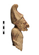 | Description: | Preserved from waist up, right hand, left arm and end of nose missing. Male figure, nude except for strap over right shoulder, and high stocking cap with end turned forward. Pierced eyes, large flat nose, open mouth with tongue stuck out. Traces of blue paint above left eyebow (?). Dull red wash. Slightly micaceous yellow-buff clay. | |