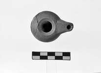 | Description: | Back part of infundibulum missing. Small lamp on base, slightly concave beneath; high rounded body; concave rim. No handle or lug. Covered inside and out with thin red wash. Type 25B' of Agora collection. Cf. Agora IV, no. 337. Cf. Agora type 25C'. | |
