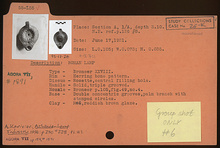 | References: | Publication: Agora VII Publication Page: Agora 7, s. 224, p. 208 Publication Page: Agora 7, s. 228, p. 212 Image: 2012.81.0477 (95-17-28) Deposit: H-I 7:1 Card: L 55 |