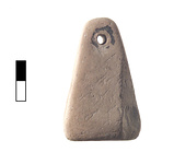| Description: | Complete: chips at bottom edges. Pyramidal loomweight with two edges pared down. Pierced 0.01m from top. Traces of brown to orange glaze over all surfaces. Fine buff-orange clay. One additional smaller loomweight from ΒΖ 683 uninventoried. | |
