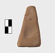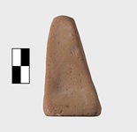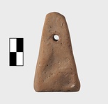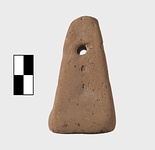 | Description: | Thin truncated pyramid. Somewhat lop-sided; square bottom. Pierced near the top. Unglazed. Pink clay. | |