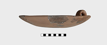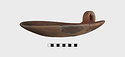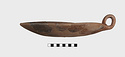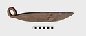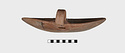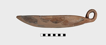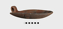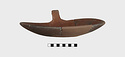 | Description: | Mended from many pieces; restored in plaster. Plain very shallow bowl, rounded on the bottom; small vertical loop handle at the rim, rising above it. Micaceous red clay; considerably blackened inside and out. [Bean Parcher A.E] | |