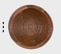 Brown glaze on inside of bowl; splashes of glaze and irregular gouges on outside.