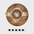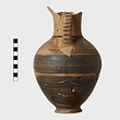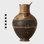 | Description: | Most of lip and fragments of body and base missing. Small flaring ring foot; flaring lip. Lip glazed, neck reserved. Handles, crosshatched; on shoulder, concentric semicircles. Body glazed, with narrow reserved band. | |